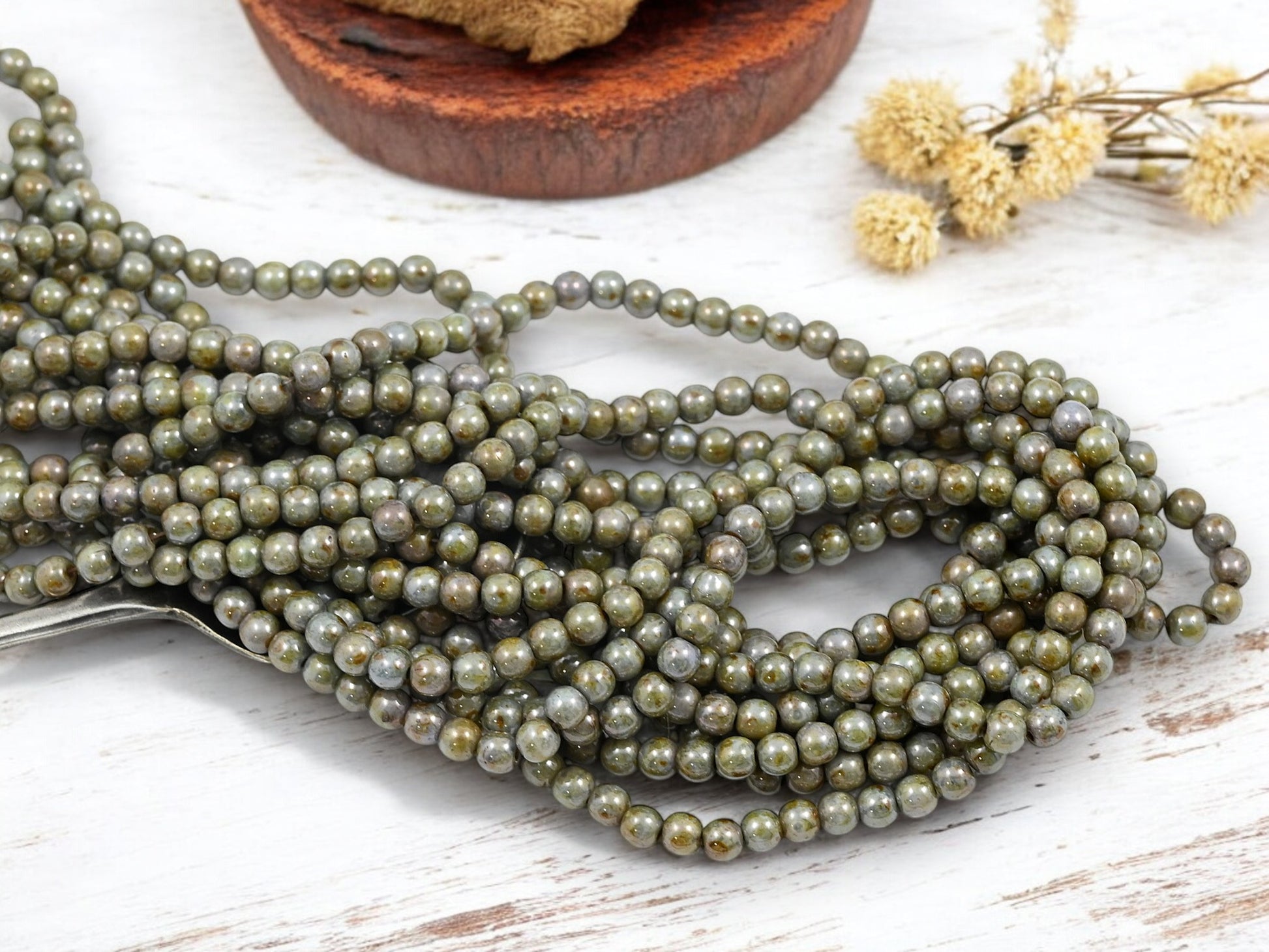 Shape/Style: Round druk beads
