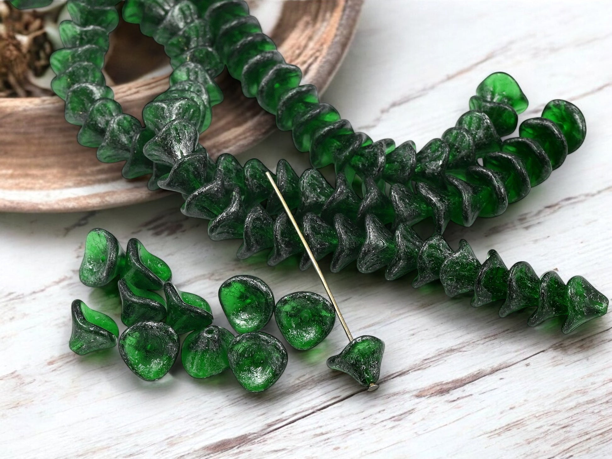 *25* 10x12mm Silver Washed Emerald 3 Petal Bell Flower Beads