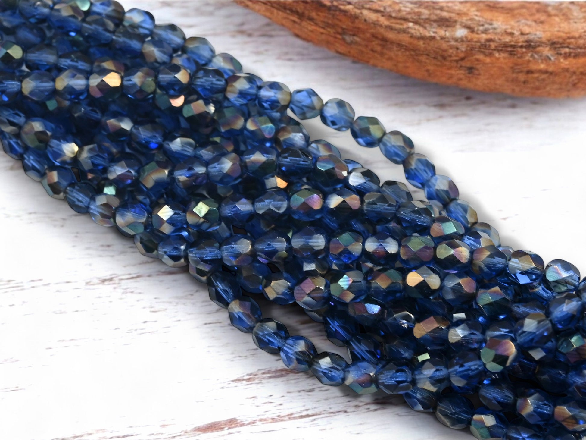 *25* 6mm Sapphire Celsian Fire Polished Round Beads